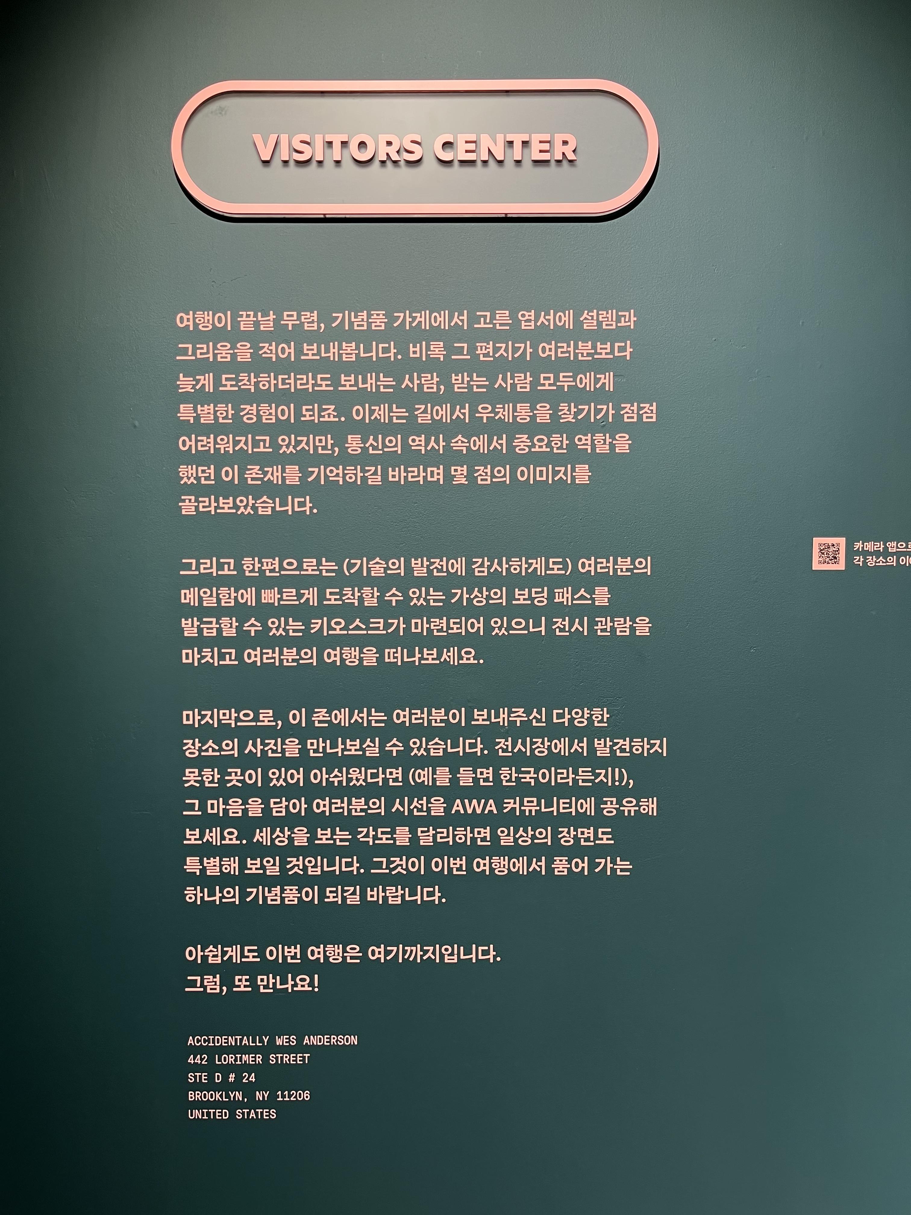 어제 외출할 때는 날이 춥지 않아 겨울이 다갔구나 싶었는데 갑자기 추워진 날씨에 오들오들 떨었지만 도착해서 본 '우연히 웨스 앤더슨'의 모든 공간이 정말 매력적이었다.